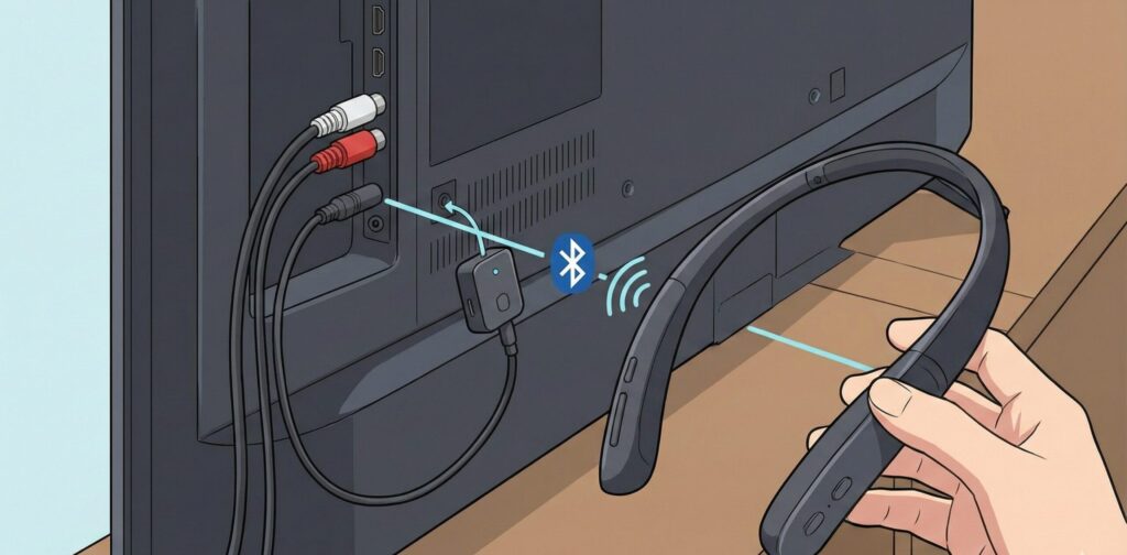 - 初心者でも迷わない!テレビとネックスピーカーの接続方法と「トランスミッター」の役割