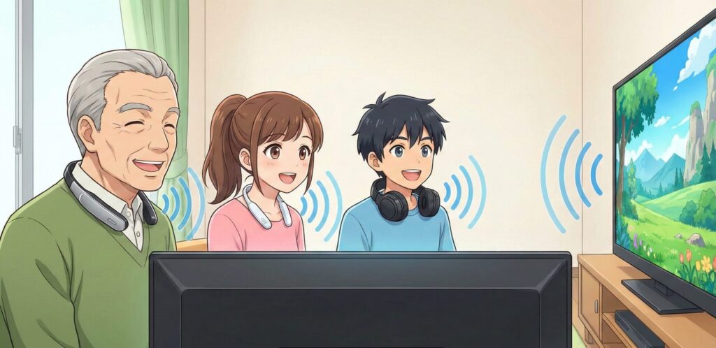 また、機種によっては**「再ペアリング」「テレビ側の音声出力設定(PCMへの変更など)」**が必要なケースも多々あります。特に高齢者へのプレゼントの場合は、シャープやソニーなどの「送信機同梱・設定不要モデル」を選ぶことが、後のトラブルを防ぐ最大のポイントとなります。
