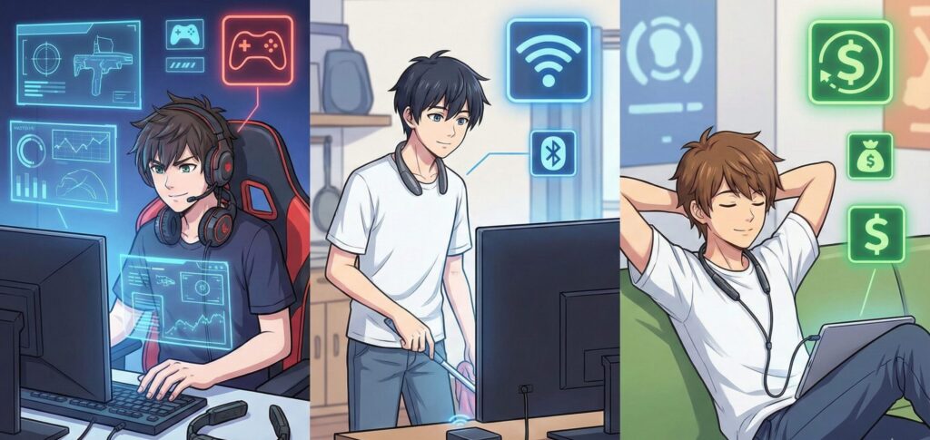 あなたのライフスタイル、そして「何のためにネックスピーカーを使うのか(テレビか、ゲームか)」に合わせて、最適な一台を選んでください。有線接続のネックスピーカーがあれば、深夜でも大迫力のサウンドを気兼ねなく楽しむ生活が待っています。