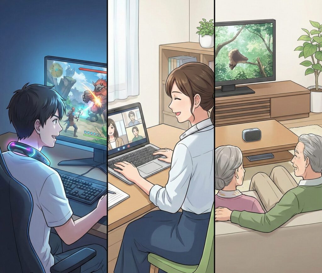 • 「ながら聴き」をしたい主婦・主夫:家事をしながらでも、テレビの音やスマホの音楽を楽しめます。