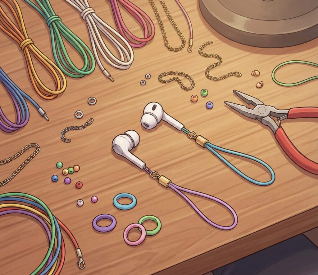 Amazonなどで専用の落下防止アクセサリーを探しても、AirPods専用ばかりで自分の機種に合わなかったり、単なる紐なのに意外と高価だったりと、購入をためらってしまうことも多いはずです。